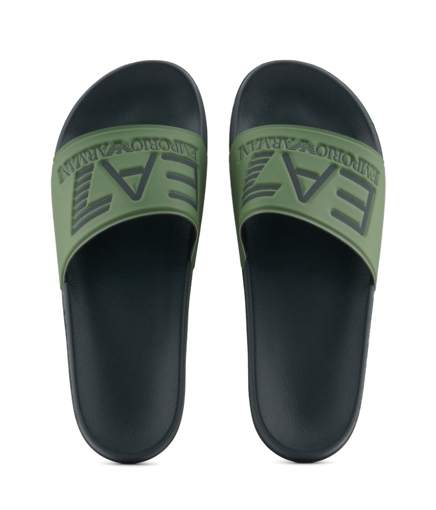 Slides with a wide band embellished with an oversized EA7 logo. A versatile style, perfect for the pool or the beach and for taking with you to the gym.