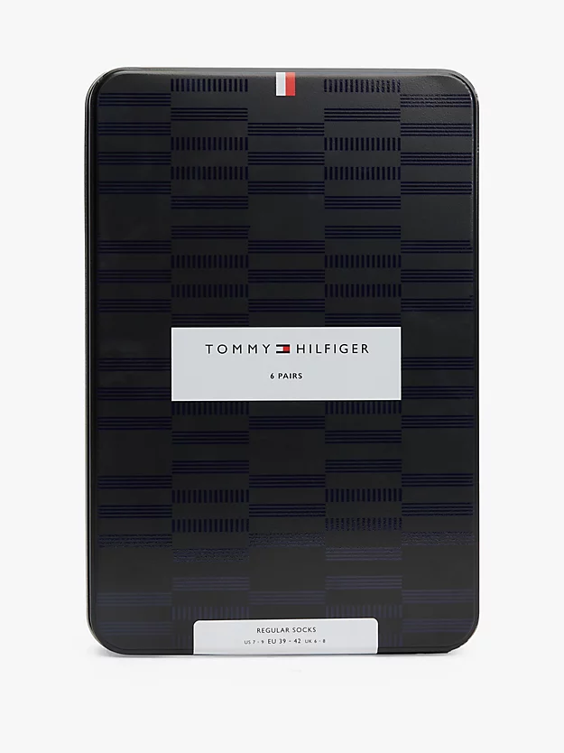 Tommy Hilfiger 6-Pack Socks Gift Box in navy blue with assorted patterns.